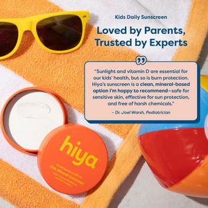 Questo template quadrato è pensato per promuovere una crema solare minerale daily per bambini con un messaggio centrato sulla fiducia. La scena è un flat-lay da spiaggia luminoso: asciugamani materici arancio e bianco, occhiali da sole gialli, un barattolo arancione di solare con la crema visibile e un pallone colorato—un contesto immediato per “giornata al mare” e cura della famiglia. A destra, un headline blu intenso (“Loved by Parents, Trusted by Experts”) guida lo sguardo, mentre una grande card con bordo e virgolette mette in primo piano una citazione autorevole. A livello strategico, funziona in fase di considerazione (mid-funnel) per genitori già orientati alla soluzione “protezione solare”, ma ancora indecisi su sicurezza e ingredienti. L’endorsement dell’esperto e i riferimenti a “minerale”, “pelle sensibile” e “senza sostanze aggressive” abbassano il rischio percepito e aumentano la credibilità. Il brand può personalizzare sostituendo il packshot, armonizzando i colori con il packaging e inserendo una citazione di pediatra/dermatologo o un claim clinico mantenendo la stessa struttura di riprova.