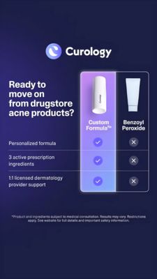 Questo template 9:16 in formato Story è pensato per brand anti-acne che vogliono far percepire il passaggio da “prodotto da farmacia” a soluzione più evoluta e guidata da professionisti. Il visual punta su uno sfondo blu notte con una card a gradiente viola‑blu: pulito, clinico, quasi “health-tech”. A sinistra domina una domanda grande e diretta che ferma lo scroll; a destra c’è il cuore della creatività: un confronto a due colonne con spunte e X, immediato da leggere anche su smartphone. La strategia è da metà funnel (consideration) per un pubblico già consapevole della soluzione: conosce ingredienti come il perossido di benzoile e sta valutando alternative migliori. Il layout “tabella” attiva curiosità e fiducia, perché trasforma i benefit in prove rapide: formula personalizzata, più attivi su prescrizione, supporto 1:1 di un dermatologo. È facile da adattare: sostituisci i due prodotti a confronto, riscrivi i tre punti con i tuoi vantaggi reali (teledermatologia, routine completa, refill), e aggiorna i colori mantenendo il contrasto alto per massima leggibilità.