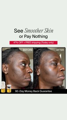 Questo template in formato Story (9:16) è pensato per promuovere un siero levigante che aiuta a migliorare grana irregolare e segni di imperfezioni. Il cuore della creatività è il layout prima/dopo a schermo diviso, con etichette “BEFORE” e “AFTER” ben leggibili: in un colpo d’occhio trasforma il risultato nella prova principale. Lo sfondo chiaro e pulito mantiene l’attenzione sulla trasformazione, mentre il titolo combina un accento in corsivo (“Smoother Skin”) con testo più deciso per un look premium ma concreto. La barra rossa con l’offerta (“47% OFF + FREE shipping (Today only)”) introduce urgenza e convenienza senza appesantire. Il footer nero con “90-Day Money Back Guarantee” aggiunge una forte leva di riduzione del rischio, perfetta per la fase di considerazione: l’utente è già orientato alla soluzione, ma vuole sicurezza prima di acquistare. Il packshot piccolo in basso consolida il prodotto senza rubare la scena ai risultati.