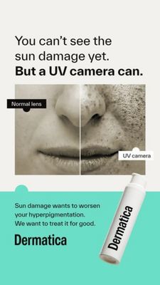 Questa creatività funziona perché trasforma un rischio astratto (danno solare) in una prova visiva immediata. Il confronto “camera UV” attiva curiosità e avversione alla perdita: l’idea di un danno che c’è ma non si vede aumenta attenzione e stop‑scroll nelle Story. Le etichette rendono la lettura istantanea e riducono lo sforzo cognitivo, mantenendo un taglio quasi “clinico”. In ottica top‑of‑funnel per pubblico non consapevole, il template non parte dal prodotto: prima definisce il problema (trigger di iperpigmentazione), poi propone la soluzione (“trattarlo davvero”). Palette pulita e tipografia netta costruiscono fiducia, mentre il packshot sovrapposto migliora memorabilità e intenzione d’acquisto. Rispetta best practice: un solo hook forte, un visual hero, gerarchia chiara da gancio a prova a promessa.
