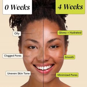 Questo template quadrato per skincare punta tutto su una trasformazione prima/dopo, ideale per promuovere un siero viso o un trattamento mirato a pelle grassa, pori ostruiti e incarnato disomogeneo. L...