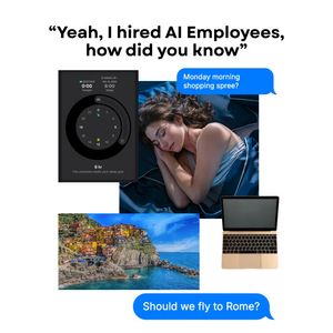 Questo template funziona perché vende prima il risultato e solo dopo lo strumento. Con un pubblico “unaware” in top‑of‑funnel, la frase “Yeah, I hired AI Employees” è un vero pattern interrupt: crea curiosità e un pizzico di sfida, spingendo a fermarsi e capire. Il collage con scene quotidiane (sonno, UI del telefono, laptop, viaggio) rende l’automazione concreta e desiderabile: la promessa è comodità e tempo guadagnato, non un elenco di feature. I balloon stile iMessage suggeriscono un modello d’uso semplice (“scrivi e delega”), abbassando la percezione di complessità e la paura di non saperlo usare. Inoltre, mostrare più casi d’uso nello stesso visual aumenta la probabilità che almeno uno agganci il bisogno del target, ottimo per campagne TOF ampie. È la base ideale per una CTA “Scopri di più”, dove poi dettagliare funzioni e prove.