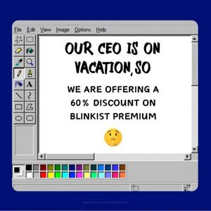 Questo template quadrato è pensato per promuovere un abbonamento digitale legato a lettura e apprendimento con un’idea “sconto segreto” molto memorabile: un messaggio ironico (“il CEO è in vacanza…”) che introduce un forte 60% di sconto sul piano premium. Il visual imita una vecchia finestra stile Paint: barra grigia con menu, colonna di strumenti a sinistra, palette colori in basso e un’area bianca centrale dove domina il testo con un font effetto pennarello. Lo sfondo blu intenso incornicia la “finestra” e la fa sembrare uno screenshot interno, da insider. A livello di strategia è perfetto per TOF (awareness) su pubblico “unaware”: curiosità e novità fanno fermare lo scroll, mentre il vantaggio economico (60% off) dà subito un motivo concreto per cliccare. L’emoji “shhh” rafforza l’idea di occasione riservata e rende l’offerta più condivisibile. Per personalizzarlo, sostituisci nome prodotto, percentuale e la battuta iniziale (fondatore, team, ‘promo nascosta’). Mantieni il concept retro per distinguerti e armonizza i colori con la tua brand identity.