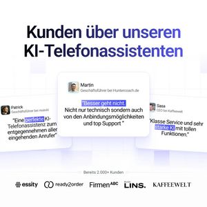 Questo template quadrato è pensato per promuovere un assistente telefonico AI B2B che risponde alle chiamate in ingresso, usando testimonianze reali come leva principale. Il look è tipicamente SaaS: sfondo bianco con una griglia molto leggera, headline grande e scura in alto e tre “card” fluttuanti al centro con recensioni. Ogni card mostra una foto profilo, nome/ruolo e una citazione in cui alcune parole chiave sono evidenziate con blocchi blu, così da guidare la lettura. In basso, una riga “2.000+ clienti” e una fascia di loghi consolidano la credibilità. A livello di strategia, è un creativo da fase di considerazione (MOF) per utenti già orientati alla soluzione: abbassa il rischio percepito con riprova sociale, rafforza la fiducia con loghi e rende tangibili i benefici (supporto, integrazioni, qualità del servizio). Funziona soprattutto con responsabili operations, customer care e sales che cercano conferme prima di richiedere una demo. È facile da adattare: cambia l’headline per il tuo caso d’uso, inserisci citazioni con risultati misurabili e aggiorna la striscia di loghi con clienti o integrazioni rilevanti.