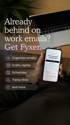 Questo template 9:16 in formato Story è pensato per promuovere un assistente email (anche AI) o un’app di produttività per chi lavora e ha la posta fuori controllo. Lo sfondo mostra una scena reale da scrivania con laptop e pianta, mentre una mano regge lo smartphone con l’interfaccia dell’app: un “product demo” immediato, credibile e molto concreto. Il grande titolo in serif (“Already behind on work emails?”) aggancia con una domanda sul problema, ideale per utenti ancora poco consapevoli, e la riga in lavanda con il nome (“Get Fyxer.”) crea contrasto e ricordo. La promessa viene resa chiarissima con una colonna di pill arrotondate e icone lineari: organizza email, propone risposte, pianifica, trascrive e altro. È una struttura perfetta per lo scroll veloce: si capisce tutto in pochi istanti. A livello strategico lavora in top-of-funnel su curiosità, comodità e risparmio di tempo. È facile personalizzarlo sostituendo screenshot, nome e lista funzioni (es. inbox zero, note riunioni, triage assistenza) mantenendo la stessa chiarezza visiva.