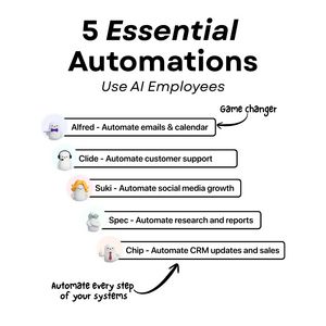 Questo template funziona perché vende prima il risultato e solo dopo la soluzione. Su un pubblico “unaware” in top of funnel, “5 automazioni essenziali” è un gancio di curiosità a basso attrito: promette utilità immediata, non un elenco tecnico di feature. Il layout a lista è super “scannable”: chi guarda riconosce al volo i compiti che odia (email, supporto, CRM) e collega mentalmente il beneficio—tempo risparmiato—attivando il trigger dell’efficienza. L’idea dei “dipendenti AI” introduce aspirazione (più capacità operative senza costi di personale) e rende concreto un concetto spesso astratto. Le note e le frecce in stile handwriting guidano la lettura e aggiungono una credibilità più umana, quasi da founder, riducendo la diffidenza verso l’automazione. È un approccio perfetto per TOF: promessa semplice, casi d’uso chiari e invito morbido ad approfondire invece di forzare la conversione.