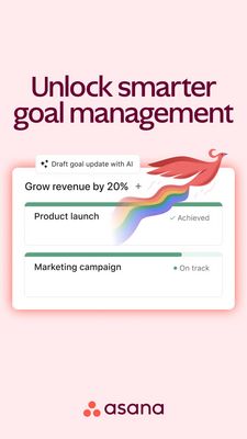 Questo template in formato Story 9:16 è pensato per promuovere un software di gestione obiettivi con assistenza AI, ideale per team e aziende. Lo sfondo rosa cipria crea un tono moderno e “friendly”, mentre il titolo in prugna scuro (“Unlock smarter goal management”) è grande e immediato: promessa chiara in pochi secondi. Al centro c’è una card UI con angoli arrotondati che mostra un obiettivo stile KPI (“Grow revenue by 20%”) e due righe di avanzamento con stati (“Achieved”, “On track”). Il piccolo chip “Draft goal update with AI” e l’illustrazione dell’uccellino con scia arcobaleno comunicano visivamente l’idea di supporto intelligente e lavoro più leggero. A livello di strategia, è un TOF puro: vende il risultato (obiettivi più intelligenti, crescita) e stimola curiosità su “come” l’AI aiuti davvero. I trigger principali sono produttività e semplicità: perfetto per manager e team lead che vogliono ridurre report manuali e mantenere tutti allineati. Si personalizza facilmente cambiando KPI, progetti e status in base al tuo settore.