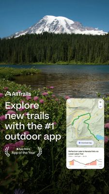 Questo template in formato Story è pensato per pubblicizzare un’app di navigazione outdoor e scoperta sentieri. La foto a tutto schermo crea subito desiderio di avventura: montagna innevata, bosco di ...
