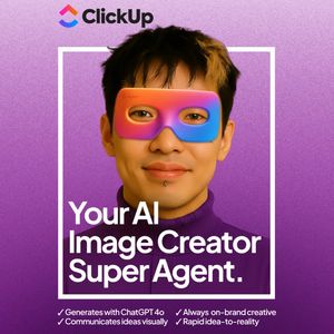 Questo template quadrato per software/SaaS promuove un assistente di creazione immagini basato su AI, raccontato come “super agent” capace di trasformare idee in creatività pronte all’uso e coerenti c...