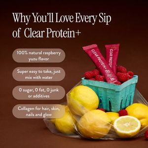 Questo template quadrato è pensato per promuovere un drink mix proteico “clear” in pratiche bustine monodose, ideale per chi vuole una bevanda leggera e rinfrescante invece dei classici shaker densi. Lo sfondo marrone intenso comunica un tono premium e fa risaltare la foto prodotto: due sachet fucsia appoggiati in un cestino turchese con lamponi e agrumi gialli, così il gusto e la freschezza risultano immediati. Il titolo in font serif elegante cattura l’attenzione, mentre a sinistra quattro box arrotondati guidano la lettura con benefit chiari e veloci (gusto naturale, facilità di preparazione, zero zuccheri/grassi/additivi, collagene per beauty glow). È una creatività perfetta per la fase di considerazione: parla a utenti già “solution-aware” e risponde alle principali obiezioni (sapore, praticità, valori nutrizionali, pulizia ingredienti) in pochi secondi. La presenza degli ingredienti reali aumenta credibilità. È facile da personalizzare cambiando frutta e claim in base al gusto, adattando palette e confezione, mantenendo la colonna di benefit per una lettura mobile impeccabile.