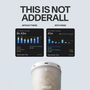 Questo template quadrato per integratori punta su un gancio provocatorio e immediato: “THIS IS NOT ADDERALL.” Il titolo enorme in nero su fondo grigio chiarissimo crea uno stop visivo netto e posiziona il prodotto come alternativa non farmacologica per concentrazione e produttività. Subito sotto, due schede stile iOS con la dicotomia “WITHOUT THIS” vs “WITH THIS” raccontano una storia comparativa facile da capire: meno distrazioni e uso più consapevole. Grafici e minuti/ore funzionano come “prova” visiva, attivando curiosità e desiderio di miglioramento, perfetti per un pubblico già consapevole della soluzione in fase di considerazione (MOF). Il design minimale, pulito e premium mantiene l’attenzione su claim e dati, mentre il flacone centrato in basso dà concretezza alla promessa. Per personalizzarlo, sostituisci gli screenshot con metriche reali (sessioni di studio, time blocking, task completati), adatta le etichette “con/senza” al tuo beneficio e armonizza i colori con la brand identity senza perdere il contrasto del titolo.