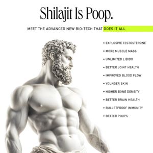 Questo template quadrato per integratori è progettato per bloccare lo scroll con un titolo diretto e provocatorio (“Shilajit Is Poop.”) in un serif elegante e ad alto contrasto, capace di generare sub...