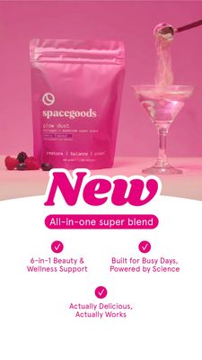 Questo template 9:16 in stile Story è pensato per promuovere un integratore in polvere aromatizzato ai frutti di bosco, da miscelare in acqua o in un drink. La metà superiore punta tutto su un hero shot pulito e “premium”: una busta richiudibile fucsia in primo piano, un calice tipo martini e un misurino che versa la polvere, con piccoli frutti sul piano per suggerire subito il gusto. Lo sfondo sfumato rosa/magenta unifica la scena e la rende super riconoscibile, mentre la parte inferiore su bianco garantisce massima leggibilità. Il titolo enorme “New” attiva la leva della novità, seguito dal claim in capsula (“All‑in‑one super blend”) che comunica praticità e completezza. I tre blocchi con spunte trasformano l’attenzione in considerazione: promessa “6‑in‑1”, credibilità scientifica e rassicurazione sul sapore (“davvero buono”). È perfetto per un pubblico già consapevole del prodotto che sta confrontando alternative. Personalizzalo cambiando pack, props del gusto e i tre benefit con dati reali su ingredienti e dosaggi.