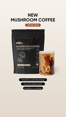 Questo template in formato 9:16 è pensato per il lancio di una bevanda funzionale: caffè ai funghi / mix adattogeno in polvere. Lo sfondo avorio caldo, pulito e luminoso, lascia il palco a un hero product centrale (busta nera opaca) affiancato da un bicchiere di iced coffee: così l’occhio collega subito “integratore” e “piacere da bere”. Il titolo “NEW MUSHROOM COFFEE” in maiuscolo e font bold è leggibile in un secondo, mentre il badge arancione “LIMITED DROP” aggiunge urgenza e scarsità con un tocco premium. Le tre pill nere in basso trasformano un prodotto “nuovo” in benefici immediati (“energia costante”, “focus e chiarezza mentale”, “niente jitters o crolli”): perfetto per il top of funnel, quando il pubblico non conosce ancora la categoria e serve un motivo semplice per fermarsi. È facilmente personalizzabile: sostituisci pack e bicchiere con la tua variante, aggiorna il colore del badge in base al brand, e riscrivi le pill con claim specifici (senza zuccheri, più calma, supporto digestivo). Lo stile minimal e moderno è ideale per brand wellness e DTC nel mondo supplementi.