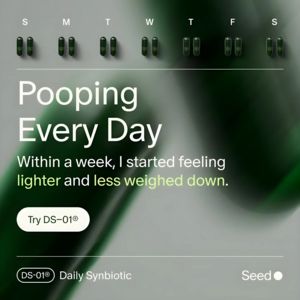Questo template quadrato è pensato per promuovere un integratore sinbiotico in capsule per il benessere intestinale, con un design pulito e “da laboratorio” che ricorda un piccolo piano settimanale. Nella fascia alta compaiono le iniziali dei giorni (S–S) accompagnate da capsule, un dettaglio visivo che comunica subito costanza e abitudine quotidiana. Al centro domina un headline enorme (“Pooping Every Day”) in sans-serif bianca, seguito da una frase breve: la parte più importante è evidenziata in verde lime per guidare l’occhio sul beneficio percepito. Sotto, un pulsante CTA arrotondato (“Try DS–01®”) rende l’azione immediata senza appesantire il layout. Lo sfondo grigio con macro sfocata in verde scuro aggiunge atmosfera premium e mantiene alta la leggibilità. A livello strategico è perfetto per TOF/awareness: usa curiosità e linguaggio diretto per agganciare anche chi non stava cercando una soluzione, poi lo ricollega a un risultato wellness (“più leggera, meno appesantita”). È facile adattarlo cambiando nome prodotto, accento colore e claim, mantenendo il motivo “capsule settimanali” come segnale di routine e credibilità.