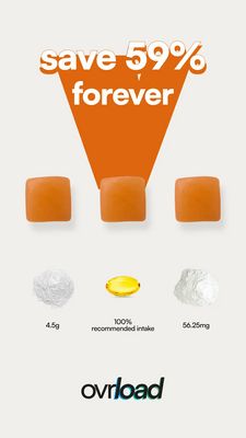 Questo template 9:16 in formato Story è pensato per integratori in caramelle (gummies) e offerte in abbonamento, con un gancio di valore immediato: “risparmia 59% per sempre”. Lo stile è pulito e supe...