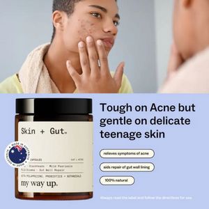 Funziona perché mette in sequenza “problema → soluzione” in modo immediato: la foto del/lla teen allo specchio attiva l’identificazione, mentre il pannello inferiore offre una risposta chiara e rassicurante. L’headline unisce efficacia e delicatezza, disinnescando l’obiezione tipica (prodotti troppo aggressivi che seccano o irritano). Gli elementi di fiducia—impaginazione pulita quasi “medical”, tipografia leggibile e badge di certificazione/provenienza—sono perfetti per la fase di consideration, quando si confrontano opzioni. I tre callout in stile pillola sono pensati per lo scrolling da mobile: trasformano i claim in motivi rapidi per approfondire. Inoltre il riferimento a “pelle + intestino” differenzia l’integratore dai soli topici, rendendo la promessa più completa senza appesantire il testo.