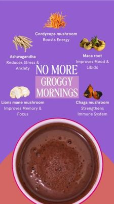 Questo template 9:16 in formato Story è pensato per promuovere una bevanda funzionale a base di mix di funghi, presentata come soluzione rapida alla stanchezza del mattino. Lo sfondo viola deciso dà s...