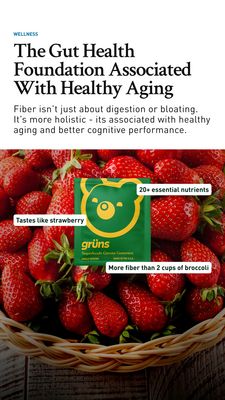 Funziona perché parte dalla credibilità: titolo grande in stile editoriale + micro-paragrafo informativo abbassano le difese di un pubblico non ancora consapevole, tipico del top of funnel. Invece di spingere subito all’acquisto, collega la salute intestinale al “healthy aging”, attivando aspirazione e curiosità. Le fragole molto vive sono un segnale sensoriale immediato di gusto e freschezza, e rispondono a un’obiezione frequente sugli integratori (“sarà buono?”). I tre badge trasformano l’offerta in motivi d’acquisto rapidi e misurabili (numero di nutrienti, sapore, confronto sulla fibra), una best practice su placement Story dove l’attenzione è brevissima. Il pack centrato consolida la riconoscibilità del brand e il contrasto verde/rosso mantiene il prodotto protagonista durante lo swipe.