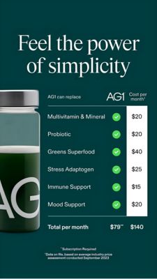 Questo template funziona perché unisce il trigger della semplicità a un risparmio dimostrabile. Invece di concentrarsi sugli ingredienti, posiziona il prodotto come sostituto di più categorie di integratori e lo “prova” con una colonna di costo mensile e un totale finale messo in evidenza. È perfetto per la fase di considerazione (MOF) e per un pubblico solution‑aware: le persone credono già nel mondo degli integratori, ma hanno bisogno di scegliere un unico prodotto e di giustificare il prezzo in abbonamento. L’headline in serif comunica autorevolezza e riduce la percezione di messaggio troppo commerciale; le spunte verdi danno conferma immediata a colpo d’occhio. In linea con le best practice, c’è un solo hero shot, righe facilmente scansionabili e un’unica conclusione (totale mensile più basso).