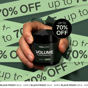 Questo template funziona in fase BOF perché riduce al minimo l’indecisione di utenti già “product-aware”: il pack è in primo piano e riconoscibile, poi arriva un incentivo unico e definitivo (“UP TO 70% OFF”). La ripetizione dello sconto sullo sfondo crea un effetto di rinforzo visivo che aumenta la memorizzazione e fa percepire l’offerta come urgente e irripetibile, perfetta per la logica Black Friday (confronto rapido e caccia al prezzo migliore). La mano che regge il barattolo aggiunge autenticità e senso di disponibilità immediata. Il badge nero ad alto contrasto imposta una gerarchia di lettura chiara nello scroll: una promessa forte, poca distrazione, e il nome prodotto rimane leggibile.