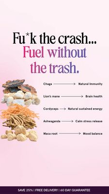 Questo template funziona perché unisce un pattern-interrupt deciso (“senza crash”) a un’educazione immediata. Con pubblico inconsapevole in top-of-funnel, l’headline intercetta un problema quotidiano (picco di energia seguito dal crollo) e lo ribalta proponendo un’alternativa “pulita” e naturale. La colonna di ingredienti fa da prova visiva di naturalità e alimenta la curiosità; la mappa con frecce traduce nomi poco familiari in risultati semplici e leggibili (immunità, focus, energia sostenuta, calma, umore). Questa struttura riduce lo sforzo mentale e aumenta la credibilità percepita senza testi lunghi. La fascia promo separata in basso offre un passo successivo chiaro per chi è interessato, permettendo test di acquisizione con sconto senza rubare spazio al messaggio principale. In sintesi: promessa unica, supporto “proof-like” via ingredienti e offerta in footer non competitiva.