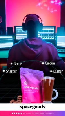 Questa creatività lavora benissimo su pubblico “unaware” in fase TOF: non pretende che l’utente conosca i nootropi, ma vende risultati con uno stack di quattro benefici leggibili al volo. L’ambientazione da postazione ad alte prestazioni attiva aspirazione e identificazione ("è per chi vuole rendere di più"), mentre il prodotto in primo piano—pouch + tazza—mantiene l’offerta concreta e immediata. La riprova sociale con stelline e numero elevato di clienti riduce la diffidenza tipica del settore integratori, senza bisogno di un testo lungo o promesse troppo spinte. Il mix tra curiosità (com’è possibile sentirsi più lucidi e più calmi insieme?) e segnali di energia (palette neon fucsia/ciano) spinge naturalmente a cliccare “Scopri di più”, accompagnando l’utente dall’awareness alla considerazione.