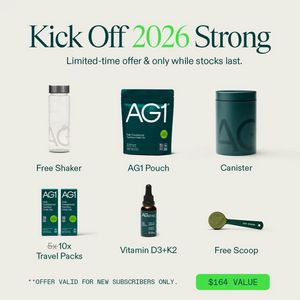 Questo template quadrato per integratori è pensato per far acquistare un bundle completo in fase di decisione. Il titolo “Kick Off 2026 Strong” sfrutta l’effetto “nuovo inizio” tipico di gennaio, mentre la riga sotto introduce subito scarsità (“limited-time… while stocks last”), perfetta per utenti già consapevoli del prodotto e pronti a comprare. Il design è una griglia pulita su fondo avorio, con ampio respiro e sei packshot ordinati: shaker in omaggio, pouch, barattolo, travel packs, flacone Vitamina D3+K2 e misurino gratuito. Ogni elemento ha la sua etichetta sotto, in tipografia essenziale, così l’offerta si capisce in un secondo. In basso a destra spicca un box verde acceso con il valore economico (“$164 VALUE”), che aumenta la percezione di convenienza senza appesantire la creatività. La palette verde petrolio + bianco comunica affidabilità e taglio “scientifico”, ideale per un pubblico wellness che cerca chiarezza e concretezza. Personalizzalo sostituendo i prodotti del bundle, aggiornando il valore e adattando headline/anno alle campagne stagionali mantenendo la stessa griglia ordinata.