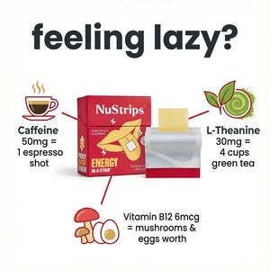 Questo layout funziona perché unisce un hook diretto sul problema (“feeling lazy?”) a una prova rapida e concreta. Invece di promesse generiche sull’“energia”, trasforma i dosaggi degli ingredienti in riferimenti quotidiani (espresso, tazze di tè verde, alimenti), sfruttando comodità e curiosità e riducendo lo sforzo mentale. È quindi perfetto per la fase MOF di considerazione con pubblico solution‑aware: l’utente sa già che un integratore può aiutare, ma vuole un motivo credibile e immediato per scegliere la striscia rispetto a caffè o capsule. Il packshot centrale costruisce fiducia, mentre i callout guidano lo sguardo e rendono la lettura “a colpo d’occhio”. Lo sfondo pulito aumenta la leggibilità in feed e il rosso ad alto contrasto migliora lo stop‑scroll mantenendo un taglio informativo.