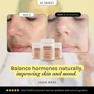 Questo template funziona perché concentra tre segnali di fiducia molto forti in un contesto di considerazione (pubblico “solution‑aware”): timeline prima/dopo con settimane, dicitura “non ritoccato” che abbassa la diffidenza, e riprova sociale quantificata (21.000+ clienti + stelle). Per chi già associa gli ormoni ai problemi di pelle, il messaggio rende la soluzione concreta e a basso sforzo (un integratore), spostando l’attenzione dal “coprire” al “risolvere da dentro”. La palette chiara e wellness mette in evidenza la texture dell’incarnato—cioè la prova—mentre il packshot sovrapposto collega immediatamente il risultato al prodotto. La CTA “Learn more” è coerente con la fase: prima di acquistare, l’utente vuole leggere ingredienti, sicurezza, modalità d’uso e recensioni, e questo layout spinge esattamente a quel passo senza forzare promesse troppo aggressive.