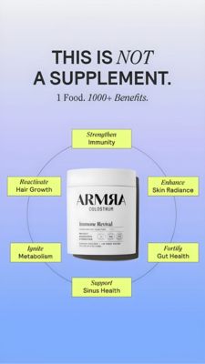 Questo template 9:16 in formato Story è pensato per promuovere colostro in polvere o integratori di nutrizione funzionale presentati come “un solo alimento, tanti benefici”. Lo sfondo sfumato dal chiaro all’azzurro dà un look pulito e moderno, mentre l’headline provocatoria (“THIS IS NOT A SUPPLEMENT.”) accende subito la curiosità e blocca lo scroll. Il barattolo è al centro come elemento hero, circondato da una mappa circolare di benefit con box giallo neon (immunità, luminosità della pelle, benessere intestinale, metabolismo, crescita dei capelli, supporto ai seni nasali). Il layout radiale funziona come scorciatoia decisionale: in pochi secondi l’utente trova il vantaggio più rilevante per sé. L’impostazione unisce credibilità “scientifica” (icone e label ordinata) e aspirazione wellness (promessa multi-beneficio), perfetta per la fase di considerazione e per un pubblico già consapevole della soluzione. È facile personalizzarlo sostituendo il pack, riscrivendo i claim in modo conforme e adattando gli accenti cromatici senza perdere il contrasto che rende i benefit immediatamente leggibili.