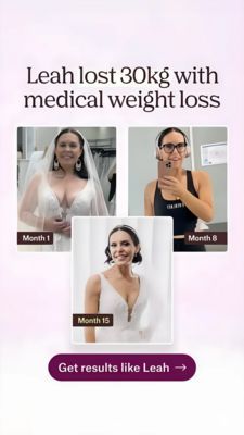 Questo template 9:16 in formato Story è pensato per programmi e cliniche di dimagrimento medico che vogliono generare interesse con una trasformazione credibile e facile da capire. Lo sfondo sfumato rosa tenue mantiene tutto pulito e “premium”, mentre il titolo in font serif scuro (“Leah lost 30kg…”) comunica subito il risultato. Tre foto con angoli arrotondati costruiscono una timeline di progresso (Month 1, Month 8, Month 15), trasformando un singolo caso reale in un percorso a tappe. Le etichette scure con il mese rendono immediata la lettura e il pulsante CTA color prugna (“Get results like Leah →”) chiude la creatività con un invito all’azione chiaro, senza appesantire. A livello strategico sfrutta aspirazione, riprova sociale e trasformazione: perfetto per pubblico top-of-funnel “non consapevole”, che non sta ancora confrontando soluzioni. La timeline aumenta la fiducia perché suggerisce un cambiamento graduale e sostenibile, non un miracolo. È facile personalizzare con un case study del brand, unità kg/lbs e CTA verso consulenza o visita.